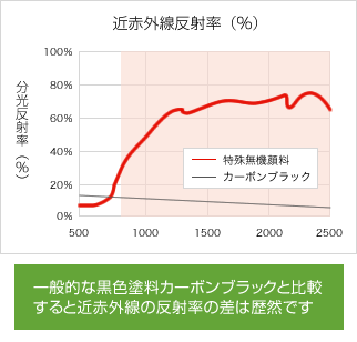 スーパーシャネツサーモシリーズに含まれる特殊無機顔料は、温度上昇の原因となる近赤外線(波長:780~2500nm)を効果的に反射し、蓄熱を防ぎます。